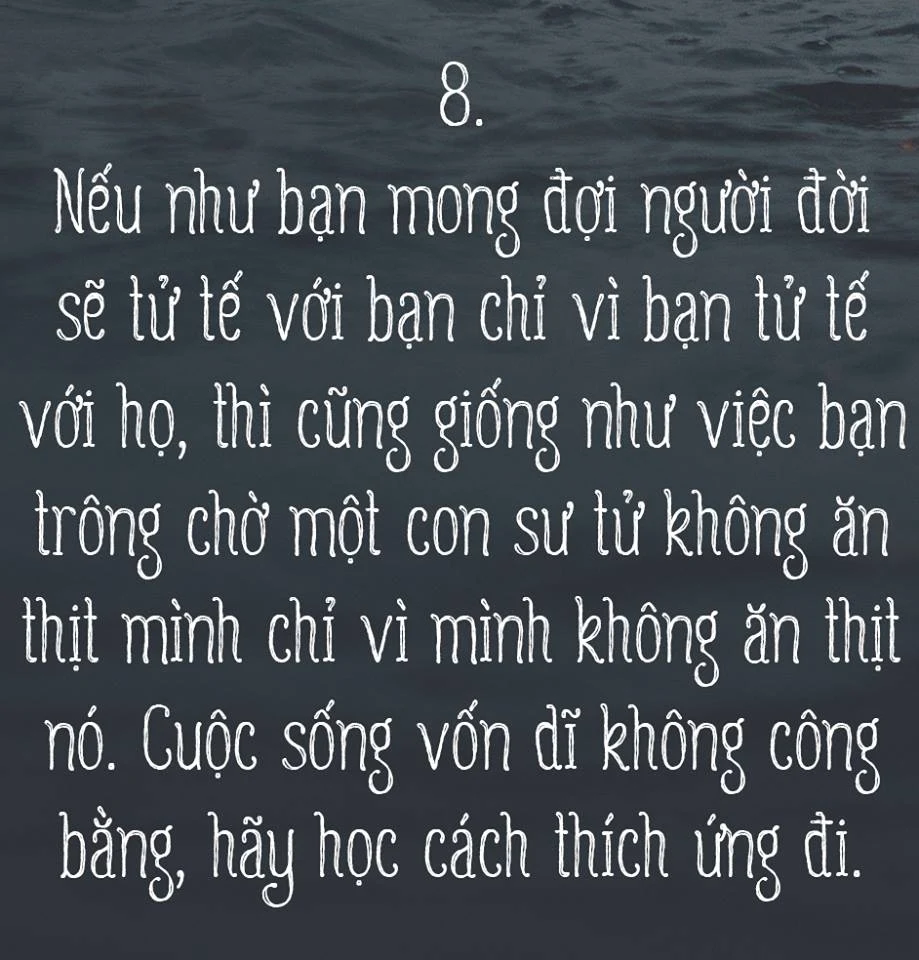 6. Thực ra, con người luôn ngược đời, người yêu bạn chiều chuộng bạn thì bạn không thèm. Người lạnh lùng, ơ hờ với bạn thì bạn lại theo đuổi mãi không thôi. Cuối cùng, người bị tổn thương đầy mình là chính bản thân bạn.